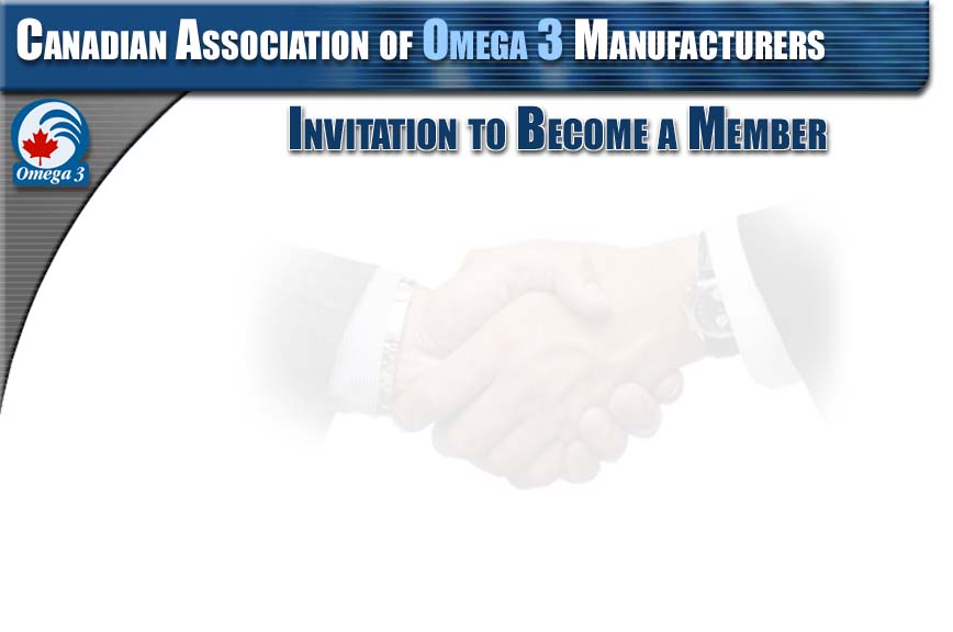 We are looking for companies who are interested in becoming members of the Canadian Association of Omega 3 Manufacturers with the privilege of being able to display the Association's logo on their product(s).