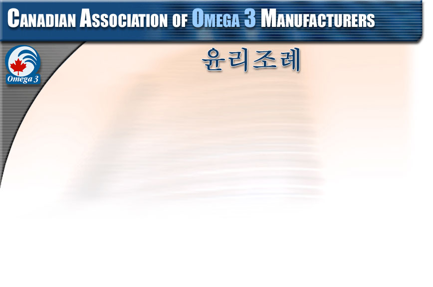 캐나다 오메가-3 생산협회회원사(CAO3M) 생산, 교육자료, 판매홍보물과 그에 준하는 자료들은 거래처와의 신뢰를 높일 수 있도록 조치를 취해야 합니다. 모든 협회회원들은 모든 사람들에게 신뢰를 쌓아 빨간 단풍잎이 신뢰의 표상이 되도록 합니다.